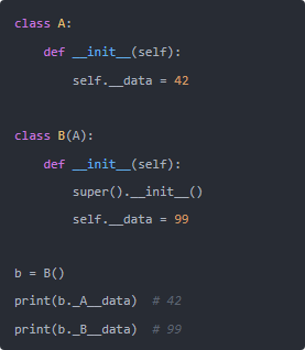 - 名字改写:双下划线触发 name mangling,调试不便。