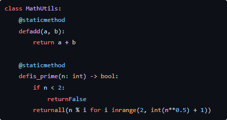 建议这两个方法别滥用!如果一个方法既不用实例属性,也不用类属性,甚至和类关系不大,那它可能根本不该写在类里。