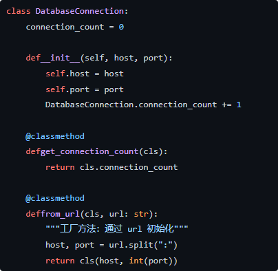 这样你就能直接通过 DatabaseConnection.from_url("127.0.0.1:3306") 来创建对象,代码变得更优雅。
