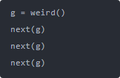 当你用 next() 调用它的时候,它不是一次性执行,而是每次执行到 yield 停下来。比如: