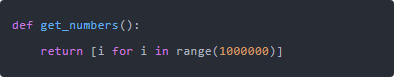 这种函数看起来挺正常的,但如果你打印下 sys.getsizeof(get_numbers()),那内存直接飙上去。因为它会在内存里一下子创建出一百万个数字。那要是再大点,比如十亿个?电脑直接卡死。