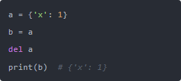 换句话说,del 是语言语法层面的操作,pop 是字典对象行为层面的操作。 这也解释了为什么 del 不仅能用在字典上,还能删变量、列表项、甚至整个对象: