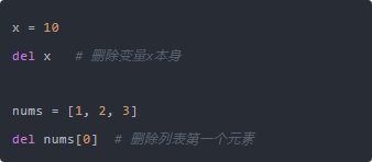 del 是 Python 的一个语句(statement),而不是函数。它负责把对象从命名空间中删除,比如从变量表、字典中移除键值对,或者从列表里删除指定索引的元素。它不会返回任何值,执行完就是直接把那条记录干掉。