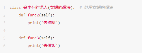 继承就是在上一代的基础上增加功能。 比如女娲造出的第一代人只会笑,不会生存。 后来,她又加了捕猎和做饭功能,于是出现了“会生存的泥人”