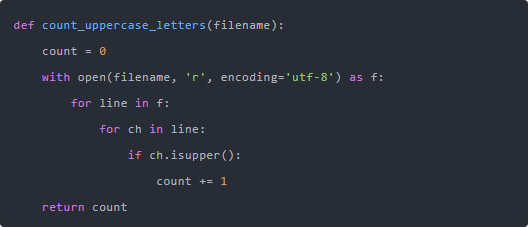 以上就是“请写一个 Python 逻辑,计算一个文件中的大写字母数量。”的详细内容,想要了解更多Python教程欢迎持续关注编程学习网。