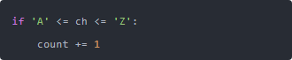这个写法逻辑上没啥变化,就是用 Counter 统计所有大写字母出现的次数,然后再加总。 看起来更工程一点,也方便你后面扩展,比如想看看哪个字母出现最多。