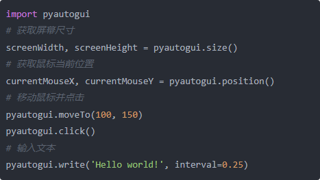 • 功能丰富:支持鼠标移动、点击、键盘输入以及截图等操作。它使用 Pillow 库处理图像相关功能,可以轻松截取屏幕并定位图像。