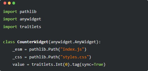 以下是一个简单的计数器widget的示例,展示了AnyWidget的易用性:
