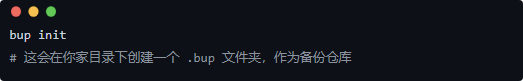 跟 Git 一样,先得有个地方存东西。默认它会创建在 ~/.bup。