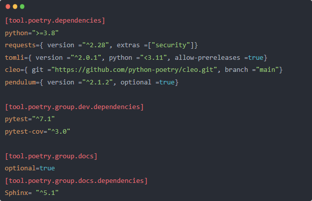 Poetry 不只有基础依赖,还能搞分组、可选依赖、Git 依赖: