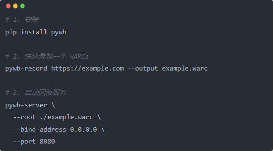 简单来说,pywb 是一个基于 Python3 的网页归档与重放工具包,出自 Webrecorder 项目之手。它能把网页抓下来打包成 WARC,然后还原出和线上几乎一模一样的“老网页”。如果你听过 Internet Archive 的 Wayback Machine,pywb 就是其中核心技术的开源版,而且功能更灵活、更好扩展。