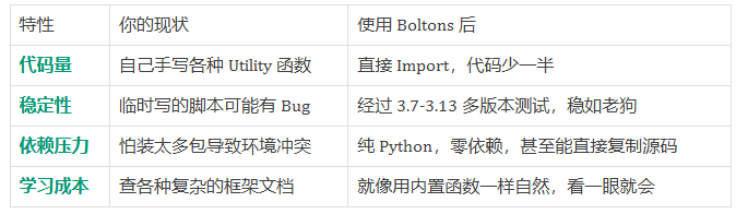 其实咱们写代码的,没必要非得从零开始造轮子。Boltons 的哲学就是“补位”。它不想取代谁,它只是想让 Python 变得更完整。