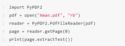 open("Aman.pdf", "rb") 将 PDF 文件以二进制模式打开;