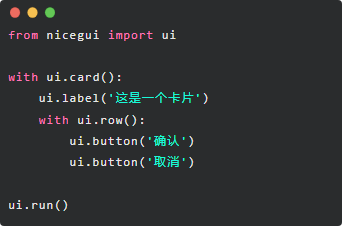 更妙的是它的布局方式,用 Python 的 with 语句,代码缩进就是界面结构,逻辑特别清晰: