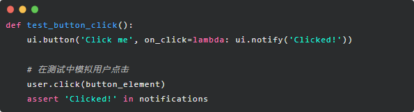 通常给界面做自动化测试是个麻烦事,但 NiceGUI 把它变得异常简单。它提供了一个叫 user 的测试工具,不用启动笨重的浏览器,直接在 Python 里就能模拟用户点击、输入: