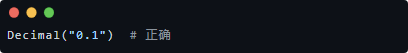 Python 内置的 decimal.Decimal 类型专为精确的小数运算而设计。它将数字存储为实际的小数分数,而不是二进制近似值。