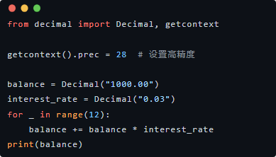 对于更复杂的金融操作(如货币、汇率、四舍五入规则),可以考虑使用专用库,例如: