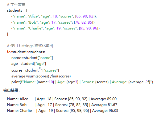 场景:输出学生的姓名、年龄、成绩,并计算平均分。