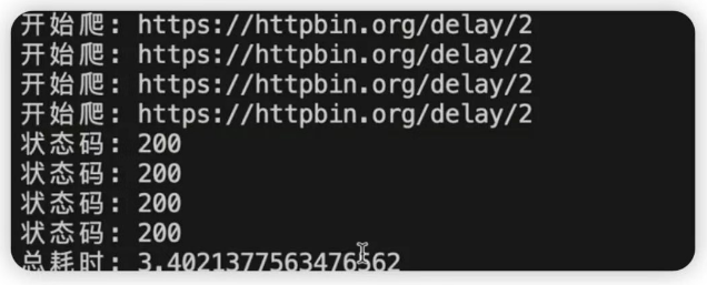 屏幕上会瞬间弹出四个“开始爬取”,紧接着几乎同时弹出四个“返回码”。