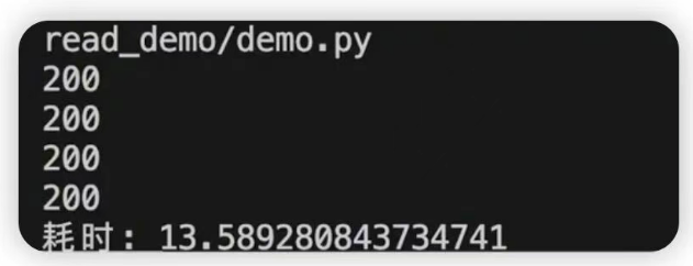 原理分析: 这种方式就像在食堂排队打饭,前面一个人没打完,后面的人只能干等着。程序的总用时 = 4个请求的运行时间 + 网络开销。它是顺序执行的,效率极低。