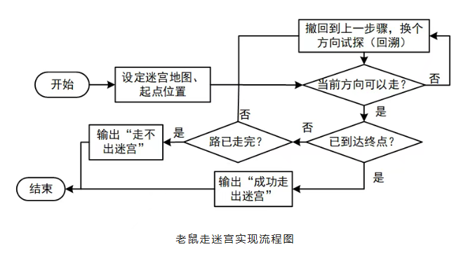 【主体设计】利用回溯法实现老鼠走迷宫的流程如下图所示。
