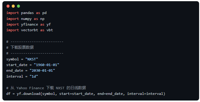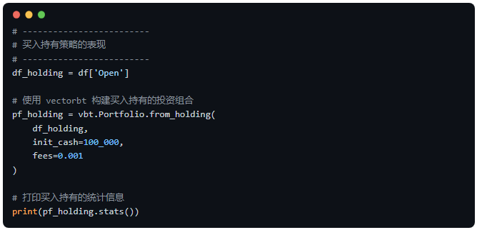 • • 它展示了 vectorbt 和 yfinance 这两个实用库的基本用法。