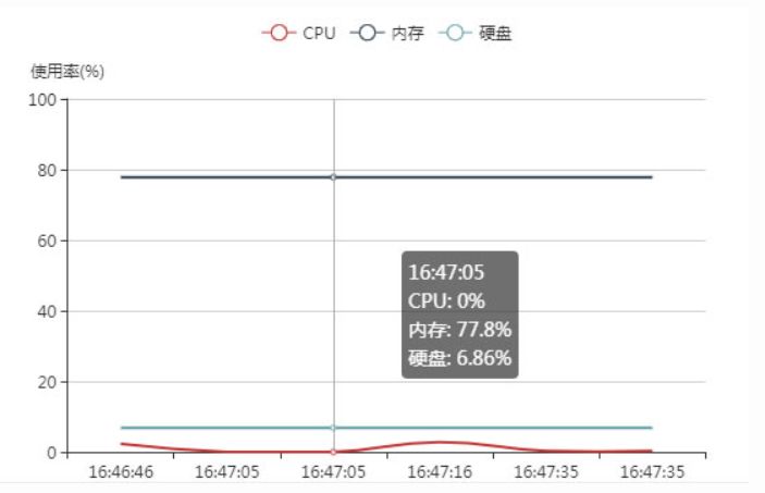 我们以场景一为例,在onTask启用定时任务,每隔30秒计算一次内存使用率。实际应用中可以把计算好的内存按时间写入数据库等存储中,然后可以根据前端需求用来渲染成统计图表,如: