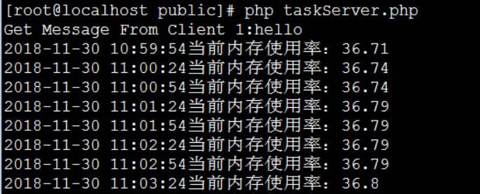 [root@localhost public]# php taskClient.php 请输入消息 Please input msg:hello Get Message From Server:{"result":"success"} [root@localhost public]#