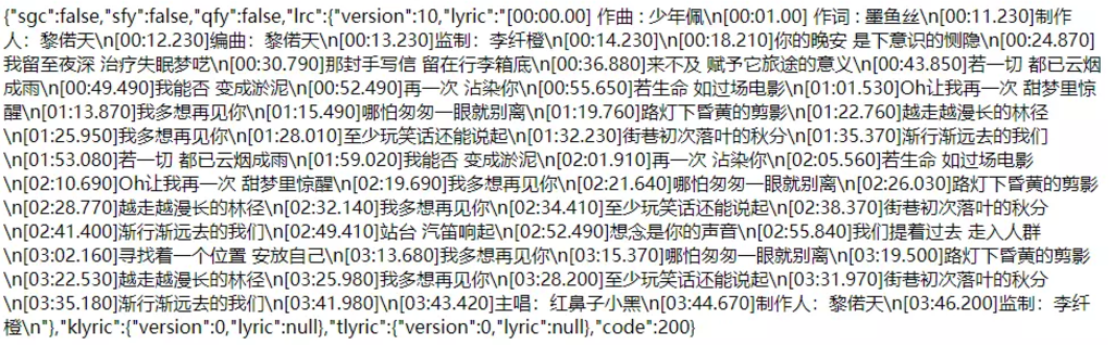 而且直接获取的歌词中,每行有一个时间轴,需要用正则表达式来剔除,完整代码如下:
