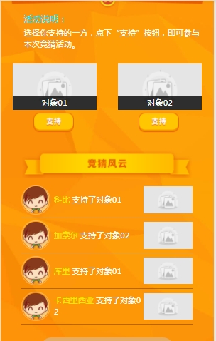 2. 有奖竞猜:选择你支持的一方,点下“支持”按钮。每人只有一次投票机会,支持的一方获胜即可获得丰厚好礼。