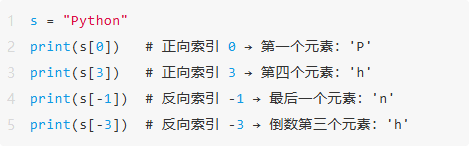 定义:可通过 “索引值” 精确获取序列中的单个元素,索引分为 正向索引 和 反向索引。
