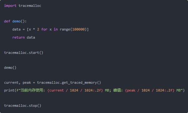 如果你想知道到底哪一行代码占了内存,可以试试 Python 自带的 tracemalloc 模块。