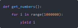 这种函数看起来挺正常的,但如果你打印下 sys.getsizeof(get_numbers()),那内存直接飙上去。因为它会在内存里一下子创建出一百万个数字。那要是再大点,比如十亿个?电脑直接卡死。