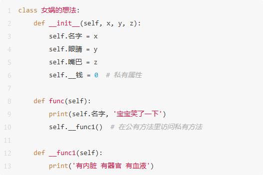 划重点:属性名前加 __ 表示私有属性,外部不能直接访问;但可以在类内部通过 self 调用;这样能保证安全性,外界改不了你的“内部逻辑”。