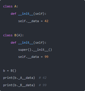 - 名字改写:双下划线触发 name mangling,调试不便。