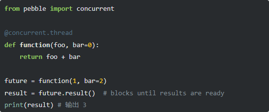 • 异步IO支持: Pebble 支持异步IO操作,通过 @asynchronous.thread 装饰器,可以将函数转换为异步线程,并使用 asyncio 库进行高效的异步编程。这对于需要处理大量IO操作的应用程序尤为重要。