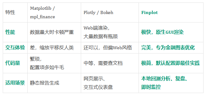 说实话,刚开始我是拒绝的。我想着,市面上不是有plotly、bokeh这些大牌吗?再不济还有mpl_finance。但这玩意儿一上手,我直接好家伙,这才是咱们做交易的人该用的东西啊!它就像是一个懂你的老交易员给你写出来的工具,而不是那种通用图表库硬套过来的半吊子。