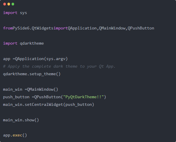 为了解决这个问题,开发者5yutan5在GitHub上创建了PyQtDarkTheme项目。这个项目旨在为QtWidgets应用程序提供一个易于使用和定制的暗黑主题,使开发人员能够更轻松地打造炫酷的用户界面。功能特点
