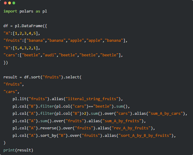 Polars提供了丰富的表达式API,使用户能够轻松进行数据转换、聚合和排序等操作。用户可以通过简洁的语法,进行复杂的数据处理逻辑。