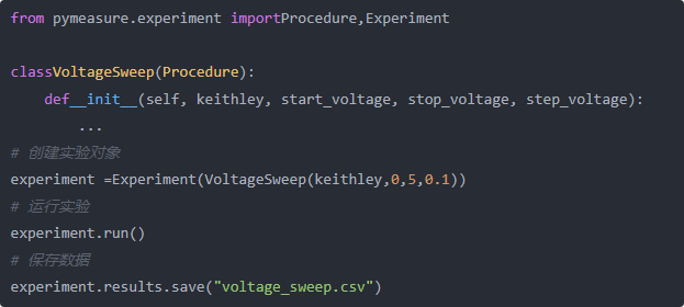 3. 强大的实验管理功能: PyMeasure 提供了 Procedure 类和 Experiment 类,方便用户定义复杂的测量流程,并自动执行实验、采集数据。用户可以通过编写简单的 Python 代码来控制实验的步骤、参数设置、数据保存等等,从而实现实验的自动化。