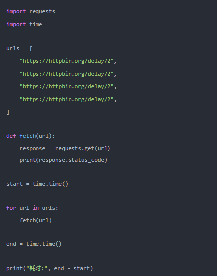 假设我们现在有一个爬虫任务:需要使用最常用的 requests 库去爬取 4 个指定的 URL 网址。