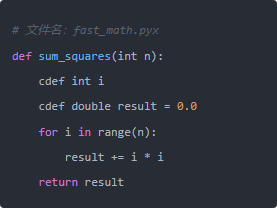 用cdef声明变量类型之后,Cython知道这些变量不需要动态类型检查,直接生成对应的C代码。编译后,这个函数以C扩展的形式被Python调用,速度可以提升几十到几百倍。