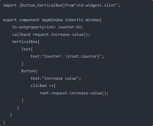简单来说,Slint就是个用来写UI的“语言 + 框架”。它的核心是:用一种叫做“Slint语言”的声明式标记语言,定义你的界面,然后连接到用Rust、C++、JavaScript或Python写的逻辑代码里。就像HTML+CSS+JS那样,但它更专注于“写界面”和“原生性能”。